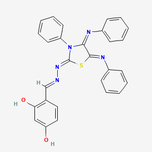 2,4-Dihydroxybenzaldehyde [3-phenyl-4,5-bis(phenylimino)-1,3-thiazolidin-2-ylidene]hydrazone is a complex organic compound that combines the structural features of 2,4-dihydroxybenzaldehyde and a thiazolidinylidene hydrazone moiety