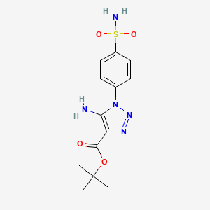 Tert-butyl 5-amino-1-[4-(aminosulfonyl)phenyl]-1H-1,2,3-triazole-4-carboxylate is a complex organic compound that belongs to the class of triazoles Triazoles are five-membered heterocyclic compounds containing three nitrogen atoms