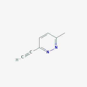 This compound is a heterocyclic organic compound. The presence of the pyridazine ring, a six-membered ring containing two adjacent nitrogen atoms, and a reactive ethynyl group suggests its potential as a building block in medicinal chemistry and materials science. Pyridazine derivatives are known to exhibit a wide range of biological activities, and the ethynyl group allows for further functionalization through reactions like click chemistry or Sonogashira coupling.