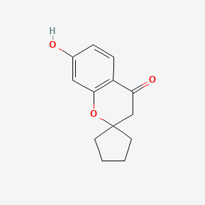 The synthesis of 7-Hydroxyspiro[chroman-2,1’-cyclopentan]-4-one typically involves the reaction of chroman derivatives with cyclopentanone under specific conditions. One common method includes the use of a base-catalyzed cyclization reaction. For instance, chroman-4-one can be reacted with cyclopentanone in the presence of a strong base like sodium hydride (NaH) to form the spirocyclic structure .