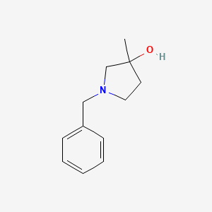This compound is a tertiary alcohol derivative of a substituted pyrrolidine. Its structure features a pyrrolidine ring with a benzyl (B1604629) group attached to the nitrogen atom (N-benzyl) and both a methyl group and a hydroxyl group attached to the C3 position. While specific research focusing exclusively on this compound is limited, its chemical structure suggests its primary role as a synthetic intermediate.