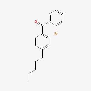 The mechanism of action of 2-Bromo-4’-n-pentylbenzophenone involves its interaction with various molecular targets. The bromine atom and the carbonyl group play crucial roles in its reactivity. The compound can form covalent bonds with nucleophilic sites in biological molecules, leading to alterations in their function. The exact pathways and targets are still under investigation, but it is believed to interfere with cellular processes by modifying proteins and nucleic acids.