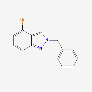 2-Benzyl-4-bromo-2H-indazole ( 952734-38-2) is a brominated indazole derivative supplied with a high level of purity. This compound serves as a versatile and valuable chemical building block in medicinal chemistry and organic synthesis, particularly in the research and development of novel pharmacologically active molecules . The indazole scaffold is a privileged structure in drug discovery, known for its broad spectrum of biological activities . This specific derivative is functionalized with a bromine atom at the 4-position, which provides a reactive site for further synthetic modification via metal-catalyzed cross-coupling reactions, such as Suzuki or Heck reactions, allowing researchers to explore a diverse chemical space . The 2-benzyl substitution stabilizes the molecule in the 2H-indazole tautomeric form. Indazole-containing compounds have demonstrated significant potential in various therapeutic areas. Research highlights their importance as core structures in approved drugs and clinical candidates, including roles as antitumor agents, tyrosine kinase inhibitors, anti-inflammatory drugs, and antimicrobials . As such, this compound is a key intermediate for researchers synthesizing novel compounds for evaluating anticancer, antimicrobial, and anti-inflammatory activities. This product is intended for research applications as a chemical reference standard and synthetic intermediate. It is strictly For Research Use Only. It is not intended for diagnostic or therapeutic use in humans or animals.