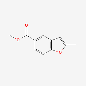 The benzofuran-5-carboxylate scaffold, as seen in Methyl 2-methyl-1-benzofuran-5-carboxylate, represents an important subclass of benzofuran derivatives. The presence of a carboxylate group, specifically a methyl ester at the 5-position, provides a key functional handle for further synthetic transformations. This ester group can be readily hydrolyzed to the corresponding carboxylic acid, which can then be converted into a variety of other functional groups, such as amides, esters, and ketones.
