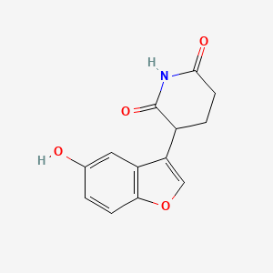 The synthesis of 3-(5-hydroxy-1-benzofuran-3-yl)piperidine-2,6-dione typically involves multiple steps, starting with the formation of the benzofuran ring. One common method is the cyclization of ortho-hydroxyaryl ketones with aldehydes under acidic conditions . The piperidine-2,6-dione moiety can be introduced through a series of nucleophilic substitution reactions, followed by cyclization.