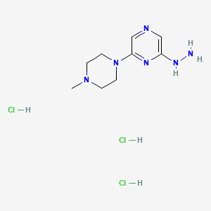 The synthesis of 2-Hydrazinyl-6-(4-methylpiperazin-1-yl)pyrazine trihydrochloride typically involves the reaction of 2-chloro-6-(4-methylpiperazin-1-yl)pyrazine with hydrazine hydrate. The reaction is carried out under reflux conditions in a suitable solvent such as ethanol or methanol. The resulting product is then purified and converted to its trihydrochloride salt form by treatment with hydrochloric acid.