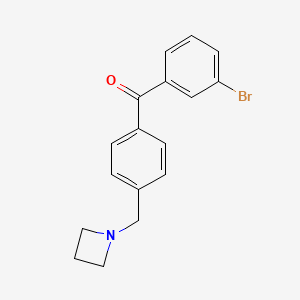 The bromo-substitution at the 3-position of one of the phenyl rings in 4'-Azetidinomethyl-3-bromobenzophenone is of particular interest. The presence of a halogen atom can significantly influence the molecule's lipophilicity and metabolic stability. Furthermore, the bromine atom can serve as a versatile synthetic handle for further functionalization through various cross-coupling reactions, such as Suzuki, Heck, and Sonogashira couplings. This allows for the generation of diverse chemical libraries for screening purposes.