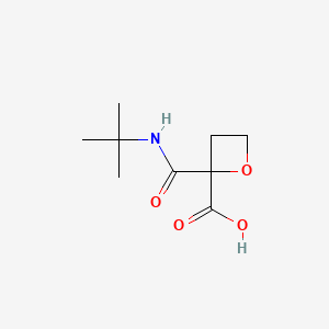 2-(Tert-butylcarbamoyl)oxetane-2-carboxylic acid undergoes various chemical reactions, including oxidation, reduction, and substitution reactions. The oxetane ring is known for its propensity to undergo ring-opening reactions, which can be catalyzed by acids or bases . Common reagents used in these reactions include strong acids like hydrochloric acid or bases like sodium hydroxide. The major products formed from these reactions depend on the specific conditions and reagents used, but they often involve the cleavage of the oxetane ring to form linear or branched products .
