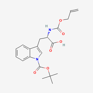 The primary advantage of Aloc-Trp(Boc)-OH lies in the orthogonal nature of its protecting groups. The α-amino Aloc group is selectively removed by palladium(0) catalysis, while the indole (B1671886) Boc group is cleaved under acidic conditions (e.g., trifluoroacetic acid, TFA), and both are stable to the basic conditions used for Fmoc group removal. nih.gov This three-way orthogonality is the cornerstone of its utility. Future research is focused on expanding this chemical toolbox to enable the synthesis of increasingly complex biomolecules, such as branched, cyclic, or multi-functionalized peptides.