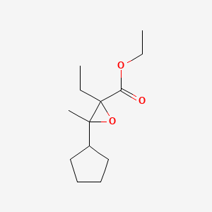 Ethyl 3-cyclopentyl-2-ethyl-3-methyloxirane-2-carboxylate is an organic compound characterized by its unique structure, which includes a cyclopentyl ring, an oxirane ring, and ester functionalities. This compound is of interest in various fields of chemistry due to its potential reactivity and applications.