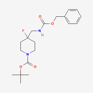 The mechanism of action of tert-butyl 4-({[(benzyloxy)carbonyl]amino}methyl)-4-fluoropiperidine-1-carboxylate involves its interaction with specific molecular targets and pathways. The fluorine atom in the piperidine ring can enhance the compound’s binding affinity to certain enzymes or receptors, thereby modulating their activity. The benzyloxycarbonyl group can also influence the compound’s stability and reactivity, affecting its overall biological activity .