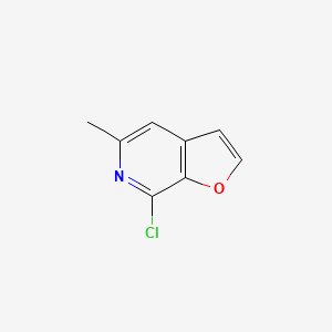 The synthesis of 7-Chloro-5-methylfuro[2,3-c]pyridine typically involves the formation of the furo[2,3-c]pyridine ring system followed by the introduction of chloro and methyl substituents. One common method involves the cyclization of appropriate precursors under specific conditions. For example, substituted furopropenoic acids can be prepared from aldehydes under Doebner’s conditions. These acids are then converted to azides, which are cyclized by heating in Dowtherm to form furopyridones. Aromatization with phosphorus oxychloride yields chloro derivatives of furo[2,3-c]pyridine .