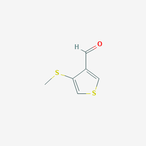 The specific substitution pattern of this compound presents a compelling case for its investigation in academic research. The thiophene ring is substituted with both an electron-donating methylsulfanyl group (-SMe) at the 4-position and an electron-withdrawing carbaldehyde group (-CHO) at the 3-position. This electronic arrangement is expected to create a unique reactivity profile.