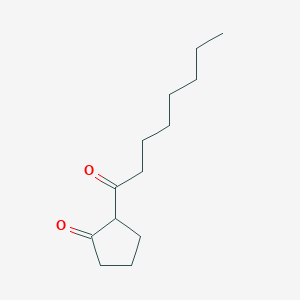 Density Functional Theory (DFT) has become a powerful and widely used tool in computational chemistry for predicting the reactivity and selectivity of chemical reactions. By approximating the electron density, DFT methods can calculate various descriptors of reactivity, such as frontier molecular orbital energies (HOMO and LUMO), electrostatic potential maps, and Fukui functions. These descriptors would be instrumental in predicting the most likely sites for nucleophilic or electrophilic attack on 2-Octanoylcyclopentan-1-one and understanding its behavior in different chemical environments. A theoretical study on substituted cyclopentanones has been conducted, providing a general framework for how substituents can influence the properties of the cyclopentanone (B42830) ring. However, this study does not include the specific octanoyl substituent and therefore lacks the detailed analysis required for this compound.