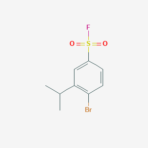 4-bromo-3-(propan-2-yl)benzene-1-sulfonyl fluoride is an organic compound that belongs to the class of benzene derivatives It is characterized by the presence of a bromine atom, an isopropyl group, and a sulfonyl fluoride group attached to a benzene ring