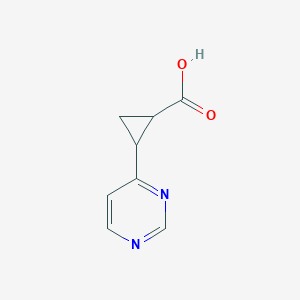 2-(Pyrimidin-4-yl)cyclopropane-1-carboxylic acid is a chemical compound with the molecular formula C8H8N2O2 It is characterized by a cyclopropane ring attached to a pyrimidine ring and a carboxylic acid group