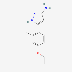 The synthesis of 5-(4-ethoxy-2-methylphenyl)-1H-pyrazol-3-amine typically involves the reaction of 4-ethoxy-2-methylphenylhydrazine with an appropriate β-diketone or β-ketoester under acidic or basic conditions. The reaction is usually carried out in a solvent such as ethanol or methanol at elevated temperatures to facilitate the formation of the pyrazole ring.
