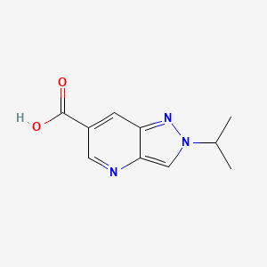 2-(Propan-2-yl)-2H-pyrazolo[4,3-b]pyridine-6-carboxylic acid is a heterocyclic compound featuring a pyrazolo[4,3-b]pyridine core substituted with an isopropyl group at position 2 and a carboxylic acid moiety at position 5. Its molecular formula is C₁₀H₁₃N₃O₂, with a molecular weight of 207.23 g/mol (calculated). The compound’s structure is critical in medicinal chemistry due to the pyrazolopyridine scaffold’s prevalence in bioactive molecules, particularly in kinase inhibitors and anticancer agents .