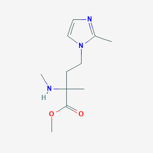 The mechanism by which Methyl 2-methyl-4-(2-methyl-1h-imidazol-1-yl)-2-(methylamino)butanoate exerts its effects involves interactions with molecular targets such as enzymes or receptors. The imidazole ring can participate in hydrogen bonding and π-π interactions, while the ester and amino groups can engage in covalent or ionic interactions. These interactions can modulate the activity of the target molecules, leading to the desired biological or chemical effects.