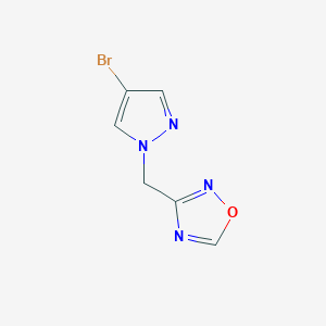 3-[(4-Bromo-1H-pyrazol-1-yl)methyl]-1,2,4-oxadiazole is a heterocyclic compound that features a pyrazole ring substituted with a bromine atom and an oxadiazole ring. This compound is of significant interest in the fields of medicinal chemistry and organic synthesis due to its unique structural properties and potential biological activities.