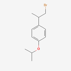 The mechanism of action of 1-(1-Bromopropan-2-yl)-4-isopropoxybenzene involves its interaction with various molecular targets. The bromine atom, being a good leaving group, facilitates nucleophilic substitution reactions. This property allows the compound to modify biological molecules, potentially affecting their function. The isopropoxy group can also interact with hydrophobic regions of proteins or membranes, influencing the compound’s biological activity.