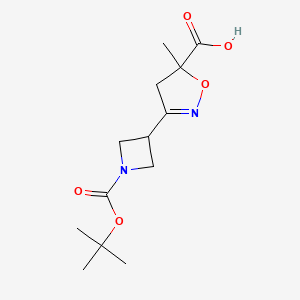 The mechanism of action of 3-{1-[(Tert-butoxy)carbonyl]azetidin-3-yl}-5-methyl-4,5-dihydro-1,2-oxazole-5-carboxylic acid involves its interaction with specific molecular targets and pathways. The compound can interact with enzymes, receptors, and other biological molecules, leading to changes in their activity and function. The specific molecular targets and pathways involved depend on the context in which the compound is used.
