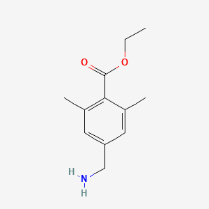 Ethyl 4-(aminomethyl)-2,6-dimethylbenzoate is an organic compound that belongs to the class of benzoates It is characterized by the presence of an ethyl ester group attached to a benzoic acid derivative, which is further substituted with an aminomethyl group and two methyl groups at the 2 and 6 positions of the benzene ring
