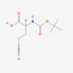 This compound is a prime example of a non-canonical amino acid designed for maximum synthetic utility. Its structure combines two key features: an α-amino acid core and a terminal alkyne functional group. The amino group is protected by a tert-butoxycarbonyl (Boc) group, a common protecting group in peptide synthesis that allows for controlled, stepwise addition to a peptide chain using techniques like solid-phase peptide synthesis (SPPS). iris-biotech.de
