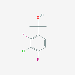 The synthesis of 2-(3-Chloro-2,4-difluorophenyl)propan-2-ol typically involves the reaction of 3-chloro-2,4-difluorobenzene with propan-2-ol under specific conditions. One common method involves the use of a base such as sodium hydroxide to facilitate the nucleophilic substitution reaction. The reaction is carried out in an organic solvent like tetrahydrofuran (THF) at elevated temperatures to ensure complete conversion .
