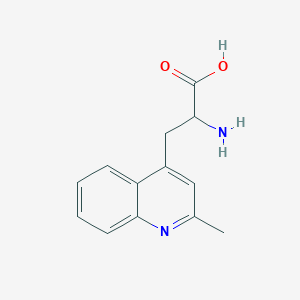 The mechanism of action of 2-Amino-3-(2-methylquinolin-4-yl)propanoic acid involves its interaction with specific molecular targets. The quinoline ring can intercalate with DNA, disrupting its function and leading to cell death. Additionally, the amino acid side chain can interact with enzymes and receptors, modulating their activity.