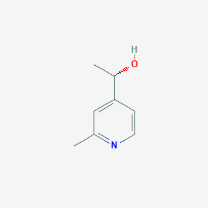(1S)-1-(2-methylpyridin-4-yl)ethan-1-ol is synthesized through the reduction of the corresponding ketone using a chiral reducing agent to ensure the desired stereochemistry. For example, the reduction of 2-methyl-4-pyridinecarboxaldehyde using a chiral borane complex can yield this compound. Industrial production may involve catalytic hydrogenation or enzymatic reduction for high enantioselectivity and yield, depending on cost, scalability, and environmental impact.
