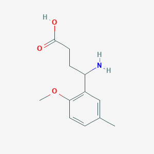 The mechanism of action of 4-Amino-4-(2-methoxy-5-methylphenyl)butanoic acid involves its interaction with specific molecular targets, such as enzymes or receptors. The amino group can form hydrogen bonds with active sites of enzymes, while the methoxy and methyl groups can influence the compound’s binding affinity and specificity. These interactions can modulate biochemical pathways and result in various biological effects .