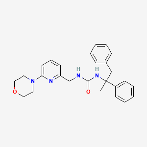 1-(1,2-Diphenylpropan-2-yl)-3-{[6-(morpholin-4-yl)pyridin-2-yl]methyl}urea is a complex organic compound known for its unique structure and potential applications in various fields. This compound features a urea linkage, a morpholine ring, and a pyridine moiety, making it a subject of interest in medicinal chemistry and material science.