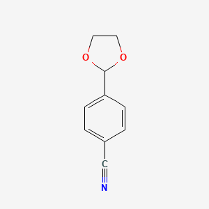 The synthesis of this intermediate is typically achieved through the acid-catalyzed reaction of 4-formylbenzonitrile with ethylene (B1197577) glycol. This reversible reaction forms the stable 1,3-dioxolane ring, thus protecting the aldehyde. The protection can be readily removed under acidic aqueous conditions to regenerate the aldehyde at a desired stage in a synthetic sequence.