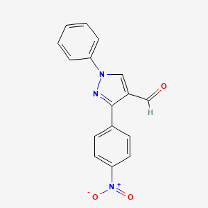3-(4-Nitrophenyl)-1-phenyl-1H-pyrazole-4-carbaldehyde is a pyrazole derivative with potential applications in diverse scientific fields . Pyrazoles, characterized by a five-membered ring containing three carbon atoms and two nitrogen atoms, are significant scaffolds in numerous natural products and exhibit a wide range of biological activities .