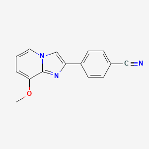 The mechanism of action of 4-(8-Methoxyimidazo[1,2-a]pyridin-2-yl)benzonitrile involves its interaction with specific molecular targets. These targets may include enzymes, receptors, or other proteins involved in biological pathways. The compound’s effects are mediated through binding to these targets, leading to modulation of their activity and subsequent biological responses .