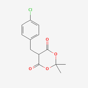 The mechanism of action of 5-(4-Chlorobenzyl)-2,2-dimethyl-1,3-dioxane-4,6-dione involves its interaction with specific molecular targets. The chlorobenzyl group can participate in various binding interactions, while the dioxane ring provides structural stability. These interactions can modulate biological pathways, leading to the compound’s observed effects.