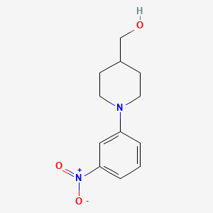 This compound is a distinct molecule within the broad class of piperidine derivatives. Its structure is characterized by three key components: a central piperidine ring, a 3-nitrophenyl group attached to the piperidine nitrogen (position 1), and a methanol (B129727) group (-CH₂OH) attached to the carbon at position 4 of the piperidine ring.