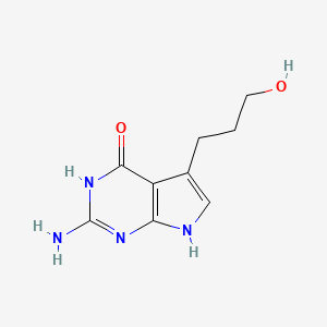 The mechanism of action of 2-Amino-5-(3-hydroxypropyl)-3H-pyrrolo[2,3-d]pyrimidin-4(7H)-one involves its interaction with specific molecular targets and pathways. For example, it has been identified as a selective inhibitor of certain kinases, such as JAK1 . The compound binds to the active site of the kinase, inhibiting its activity and thereby modulating downstream signaling pathways involved in cell proliferation and survival.