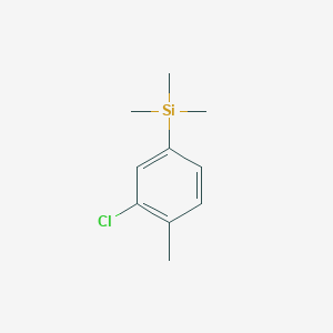 (3-Chloro-4-methylphenyl)trimethylsilane is an organosilicon compound featuring a phenyl ring substituted with a chlorine atom at the meta-position (C3) and a methyl group at the para-position (C4), attached to a trimethylsilyl (-Si(CH₃)₃) group. This structure combines aromatic halogenation and silicon-based functionality, making it relevant in synthetic chemistry for applications such as hydrophobization, cross-coupling reactions, or as a protective group in organic synthesis.