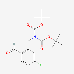 The mechanism of action of 4-Chloro-2-[(di-Boc-amino)methyl]benzaldehyde involves its reactivity as an aldehyde and its ability to undergo various chemical transformations. The molecular targets and pathways involved depend on the specific reactions it undergoes. For example, in oxidation reactions, it targets oxidizing agents, while in reduction reactions, it targets reducing agents .