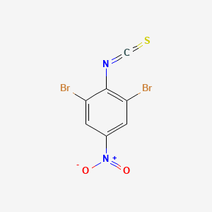2,6-Dibromo-4-nitrophenyl isothiocyanate is a halogenated aromatic isothiocyanate characterized by two bromine atoms at the 2- and 6-positions and a nitro group at the 4-position of the phenyl ring. Isothiocyanates are widely used in organic synthesis, agrochemicals, and pharmaceuticals due to their electrophilic reactivity, enabling crosslinking or conjugation with nucleophiles like amines and thiols . The bromine and nitro substituents in this compound likely enhance its electron-withdrawing effects, increasing stability and altering reactivity compared to simpler isothiocyanates.