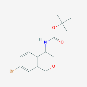 The mechanism of action of 7-Bromo-N-Boc-4-aminoisochromane involves its reactivity due to the presence of the bromine atom and the Boc-protected amino group. The bromine atom can participate in electrophilic substitution reactions, while the Boc group can be selectively removed to reveal the reactive amine group .