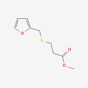 this compound is typically synthesized via a thiol-ene reaction between furfuryl mercaptan and methyl acrylate , often catalyzed by acidic or basic conditions. The reaction proceeds through nucleophilic thiol addition to the α,β-unsaturated ester. Purity can be confirmed using gas chromatography-mass spectrometry (GC-MS) or high-performance liquid chromatography (HPLC) . For scale-up, inert atmospheres (e.g., nitrogen) are recommended to prevent oxidation of the thiol group. The compound’s CAS number (94278-26-9) ensures accurate identification in synthesis workflows .