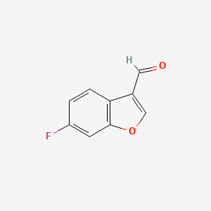 The mechanism of action of 6-Fluorobenzofuran-3-carbaldehyde involves its interaction with specific molecular targets and pathways. The aldehyde group can form covalent bonds with nucleophilic sites in biological molecules, leading to various biological effects. The fluorine atom can enhance the compound’s stability and bioavailability, making it a valuable component in drug design .