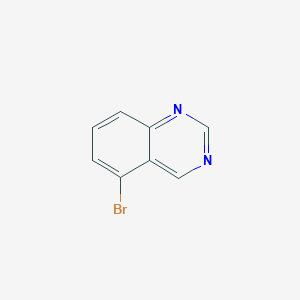 5-Bromoquinazoline is a halogenated heterocyclic aromatic compound that has garnered significant attention within the scientific community, particularly in the fields of medicinal chemistry and materials science. Its structure, featuring a quinazoline core with a bromine substituent at the 5-position, makes it a versatile synthetic intermediate. The quinazoline scaffold is a common motif in numerous biologically active compounds, and the presence of the bromine atom provides a reactive handle for a variety of chemical transformations. This guide provides a comprehensive overview of this compound, including its chemical and physical properties, synthesis methodologies, and key applications, with a focus on its role in drug discovery and development.