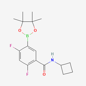 The mechanism of action of N-Cyclobutyl-2,4-difluoro-5-(4,4,5,5-tetramethyl-1,3,2-dioxaborolan-2-yl)benzamide involves its interaction with specific molecular targets. The dioxaborolan group can act as a nucleophile, participating in various chemical reactions. The difluoro groups enhance the compound’s stability and reactivity, making it a valuable intermediate in organic synthesis .