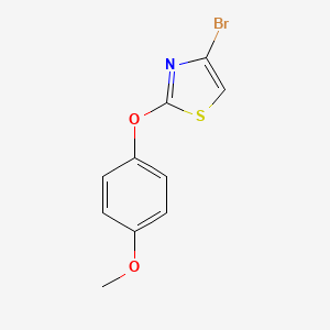 A representative reaction scheme is as follows: 2,4-dibromothiazole is treated with 4-methoxyphenol and potassium carbonate in a solvent like DMF at an elevated temperature. The carbonate base facilitates the formation of the potassium 4-methoxyphenoxide salt, which then acts as the nucleophile to displace the bromide at the C-2 position. The choice of base and solvent is crucial for the reaction's success, influencing both the reaction rate and the yield of the final product.