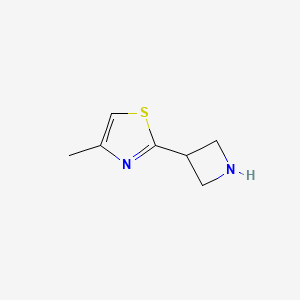 2-(Azetidin-3-yl)-4-methylthiazole is a heterocyclic compound featuring a bicyclic system composed of an azetidine and a 4-methylthiazole ring. This molecule belongs to a class of compounds that has garnered significant interest in medicinal chemistry due to the diverse biological activities associated with both the azetidine and thiazole moieties. Azetidine rings are known to be present in a variety of biologically active compounds, including antibiotics and enzyme inhibitors. Similarly, the thiazole ring is a core structure in many pharmaceuticals, exhibiting a wide range of activities such as antimicrobial, anti-inflammatory, and anticancer properties. The combination of these two pharmacophores in a single molecule makes this compound a compound of interest for further investigation in drug discovery and development.