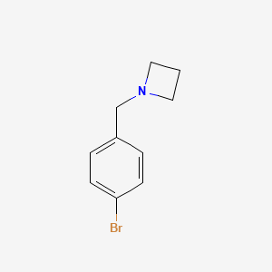 The synthesis of 1-(4-bromobenzyl)-3-[(tert-butyldimethylsilyl)oxy]azetidine can be achieved through a multi-step process. A common route involves the direct alkylation of an azetidine precursor. This typically starts with the reaction of azetidine with 4-bromobenzyl chloride in the presence of a base to introduce the bromobenzyl group at the nitrogen atom. smolecule.com